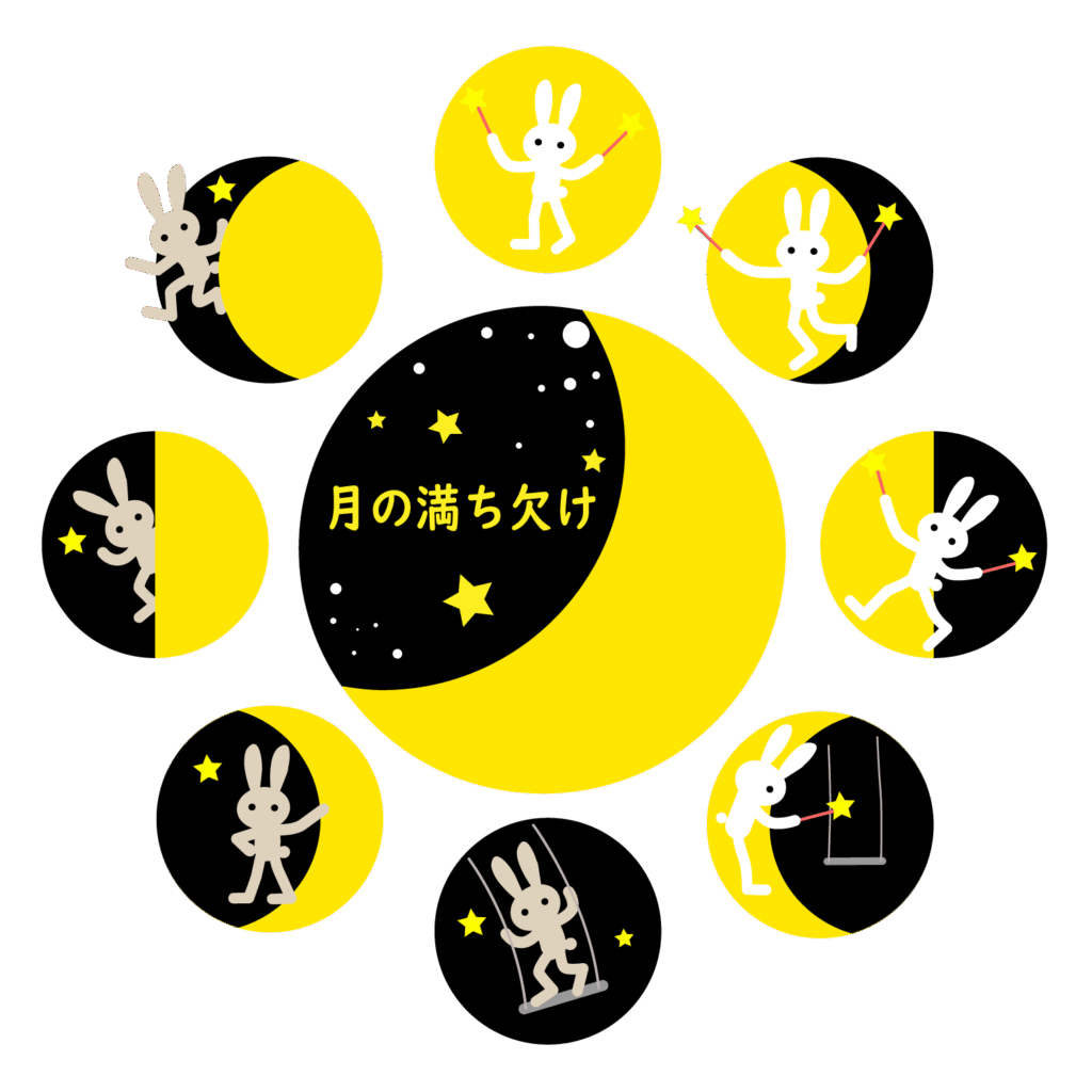月の満ち欠けは太陽・地球・月の運動によって変化致します。