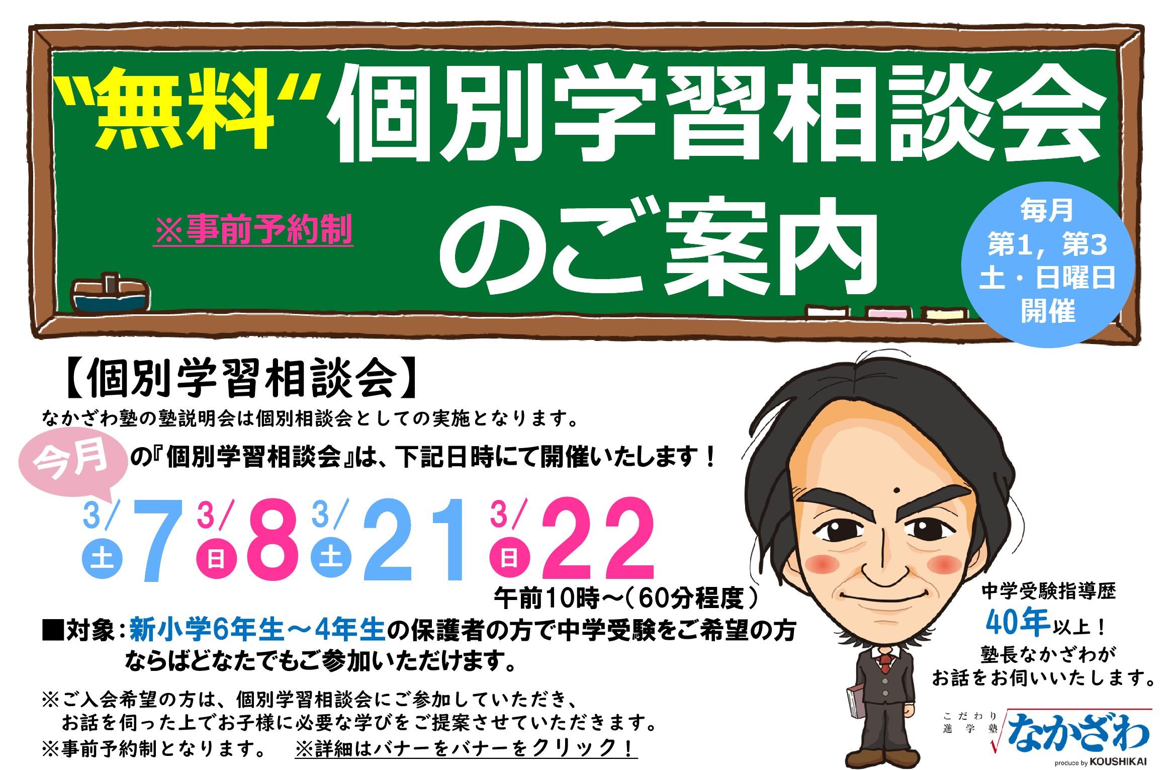 なかざわ塾の塾説明会は個別相談会としての実施となります。